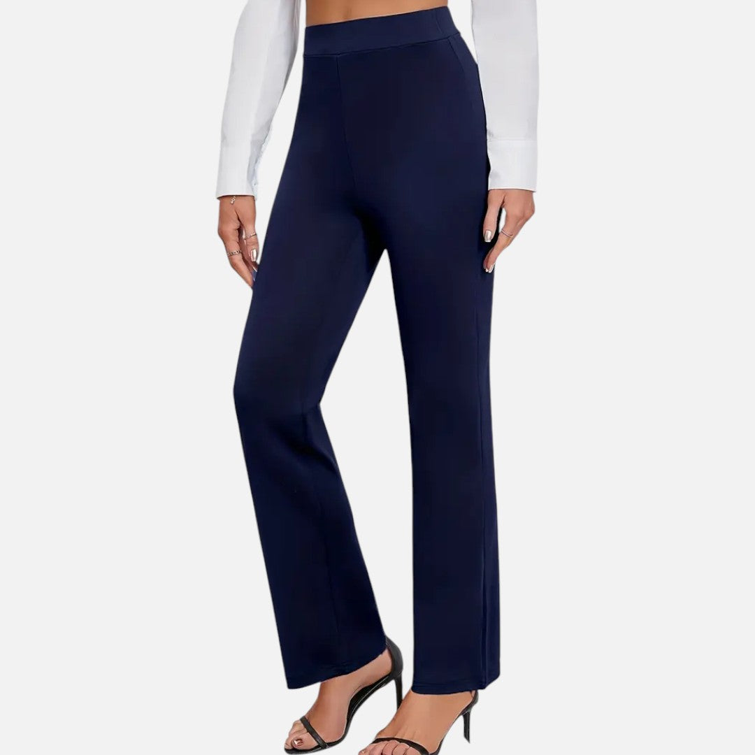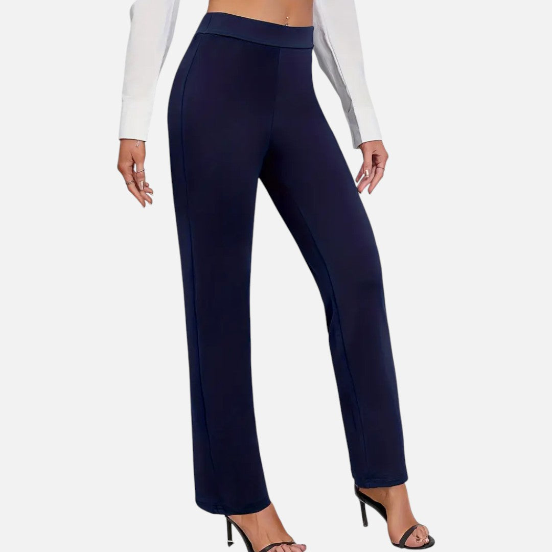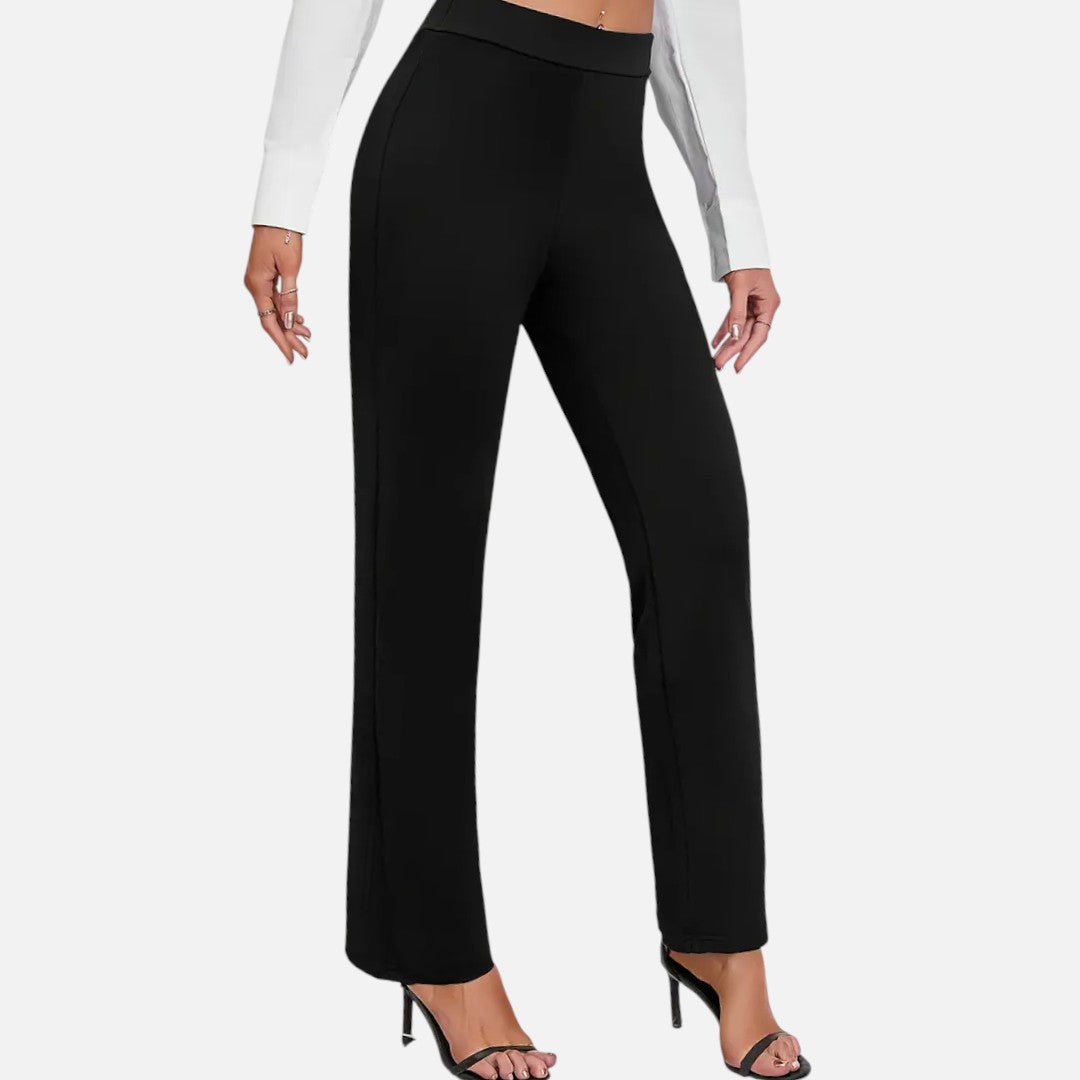Deze dames broek in zwart combineert ultiem draagcomfort met een moderne rechte pasvorm. Dankzij de elastische taille sluit hij perfect aan zonder te knellen, terwijl het veelzijdige design ideaal is voor zowel casual als nette outfits. Een tijdloze basic die altijd van pas komt.