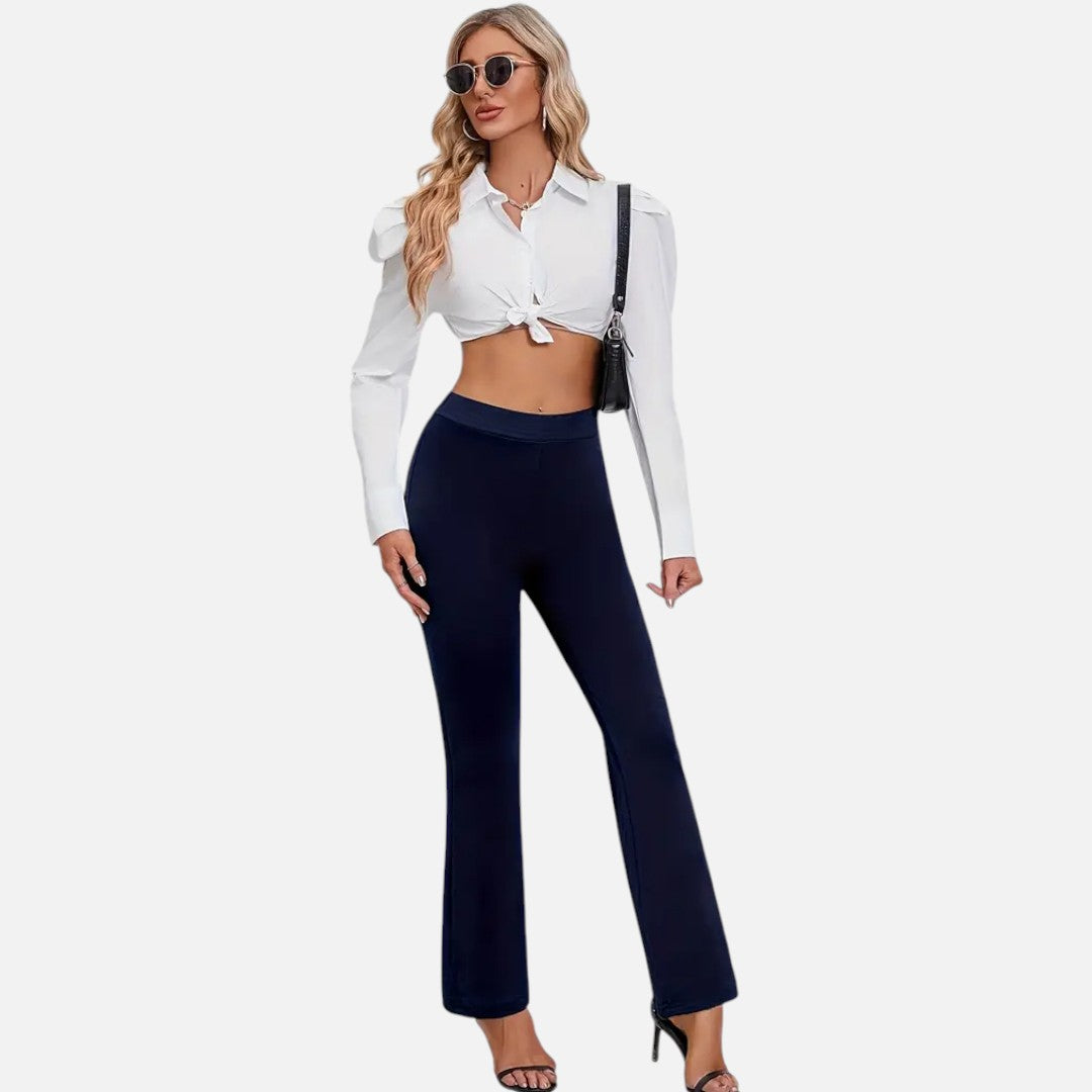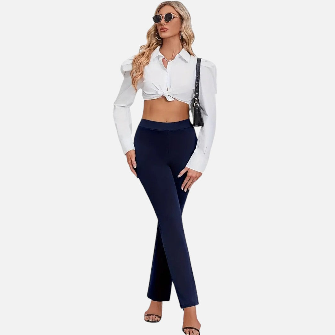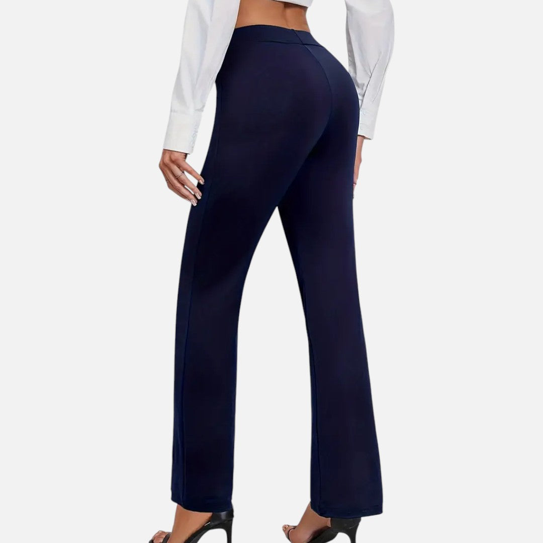 Deze dames broek in zwart combineert ultiem draagcomfort met een moderne rechte pasvorm. Dankzij de elastische taille sluit hij perfect aan zonder te knellen, terwijl het veelzijdige design ideaal is voor zowel casual als nette outfits. Een tijdloze basic die altijd van pas komt.