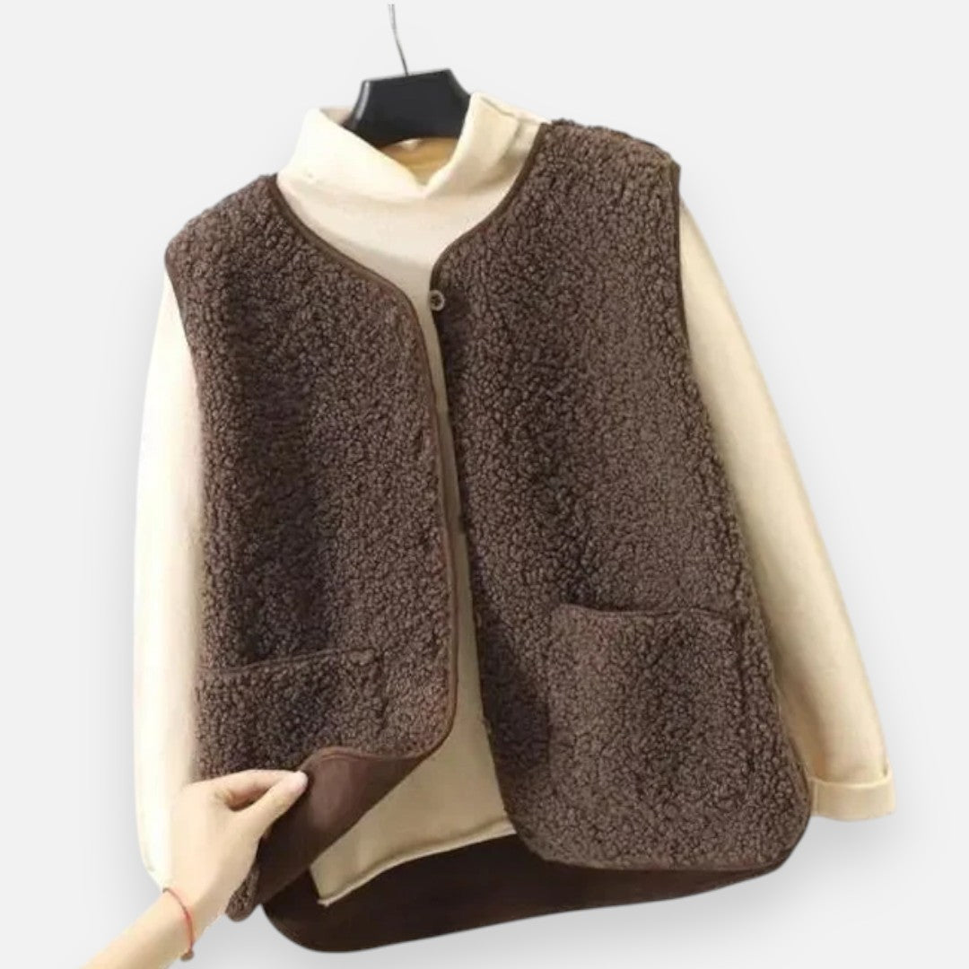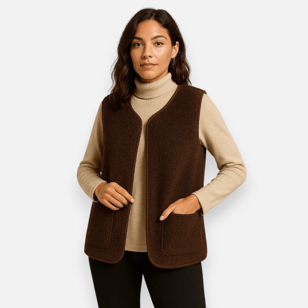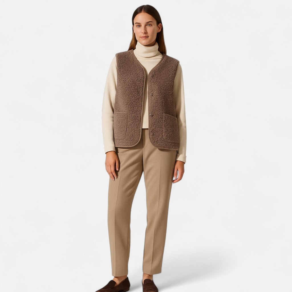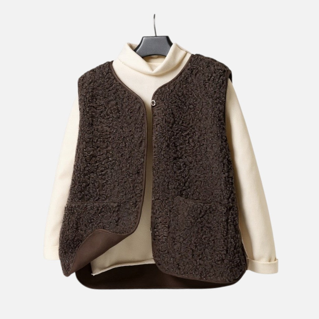 Stel je voor: een frisse ochtend waarop je jezelf hult in de fluweelzachte warmte van dit gilet. De rijke textuur en het lichte, comfortabele gevoel maken dit tot een item dat gewone momenten verandert in stille luxe. Of je nu tussen herfstbladeren wandelt of laagjes draagt tijdens een ontspannen brunch, dit gilet houdt je warm zonder in te leveren op elegantie.