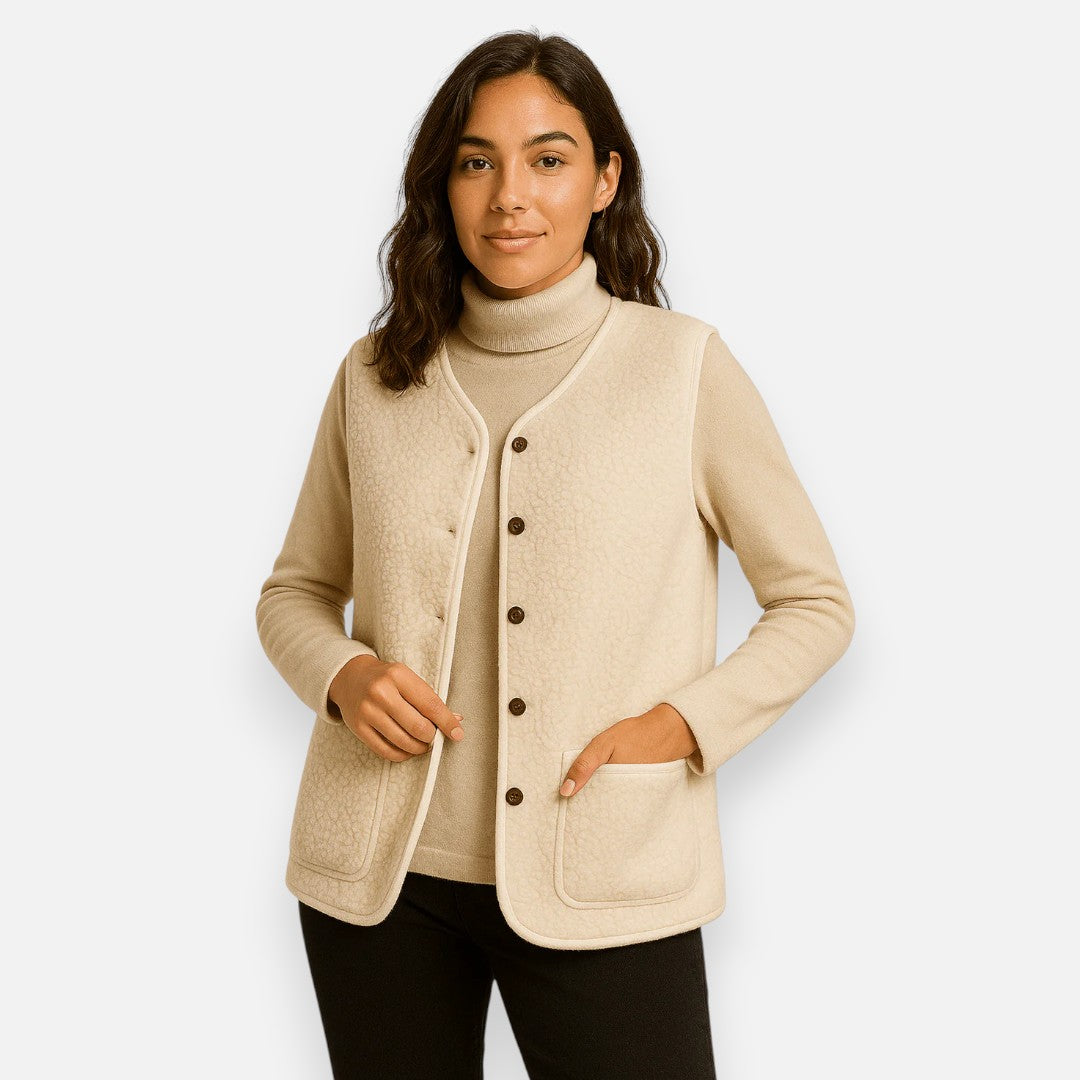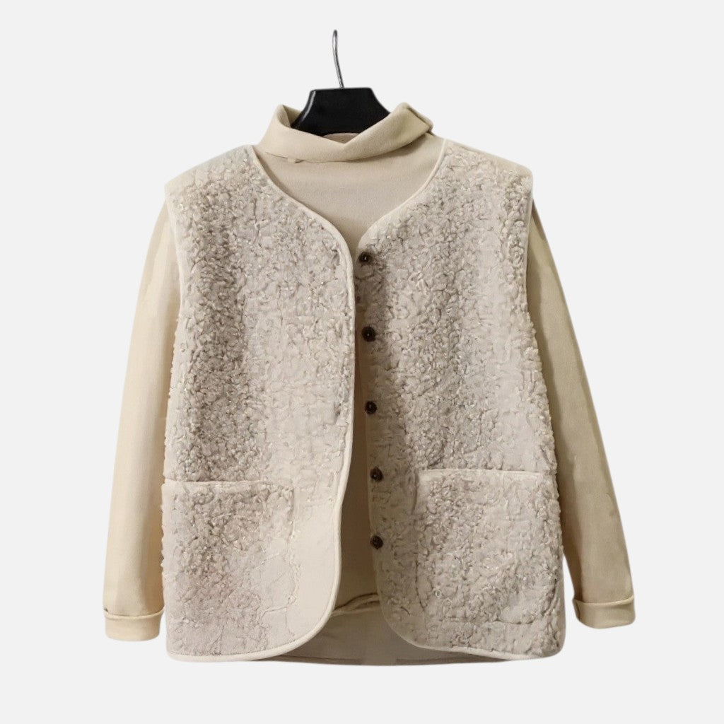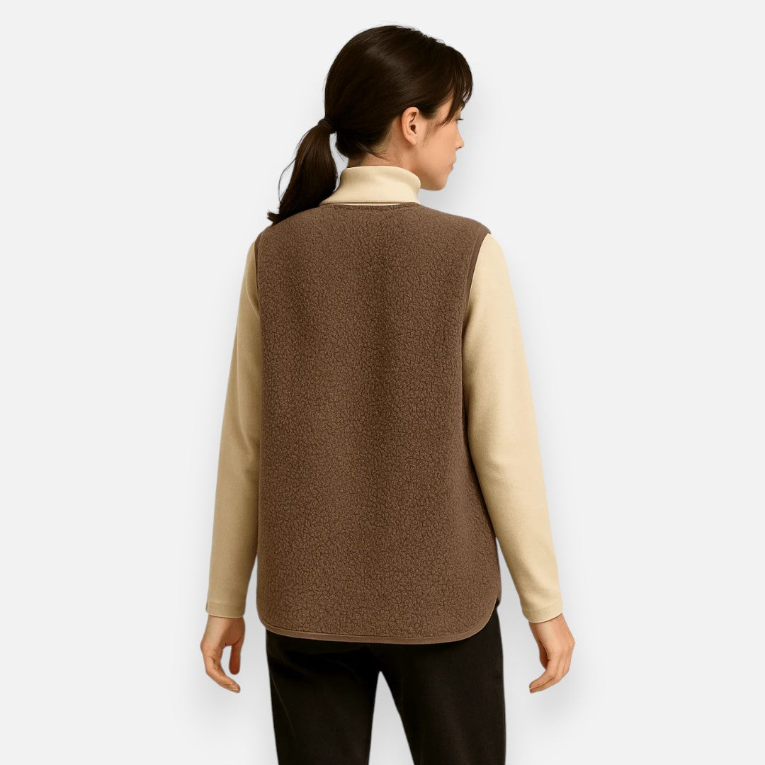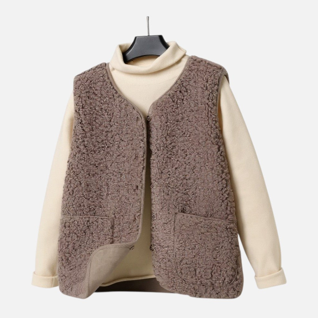 Stel je voor: een frisse ochtend waarop je jezelf hult in de fluweelzachte warmte van dit gilet. De rijke textuur en het lichte, comfortabele gevoel maken dit tot een item dat gewone momenten verandert in stille luxe. Of je nu tussen herfstbladeren wandelt of laagjes draagt tijdens een ontspannen brunch, dit gilet houdt je warm zonder in te leveren op elegantie.