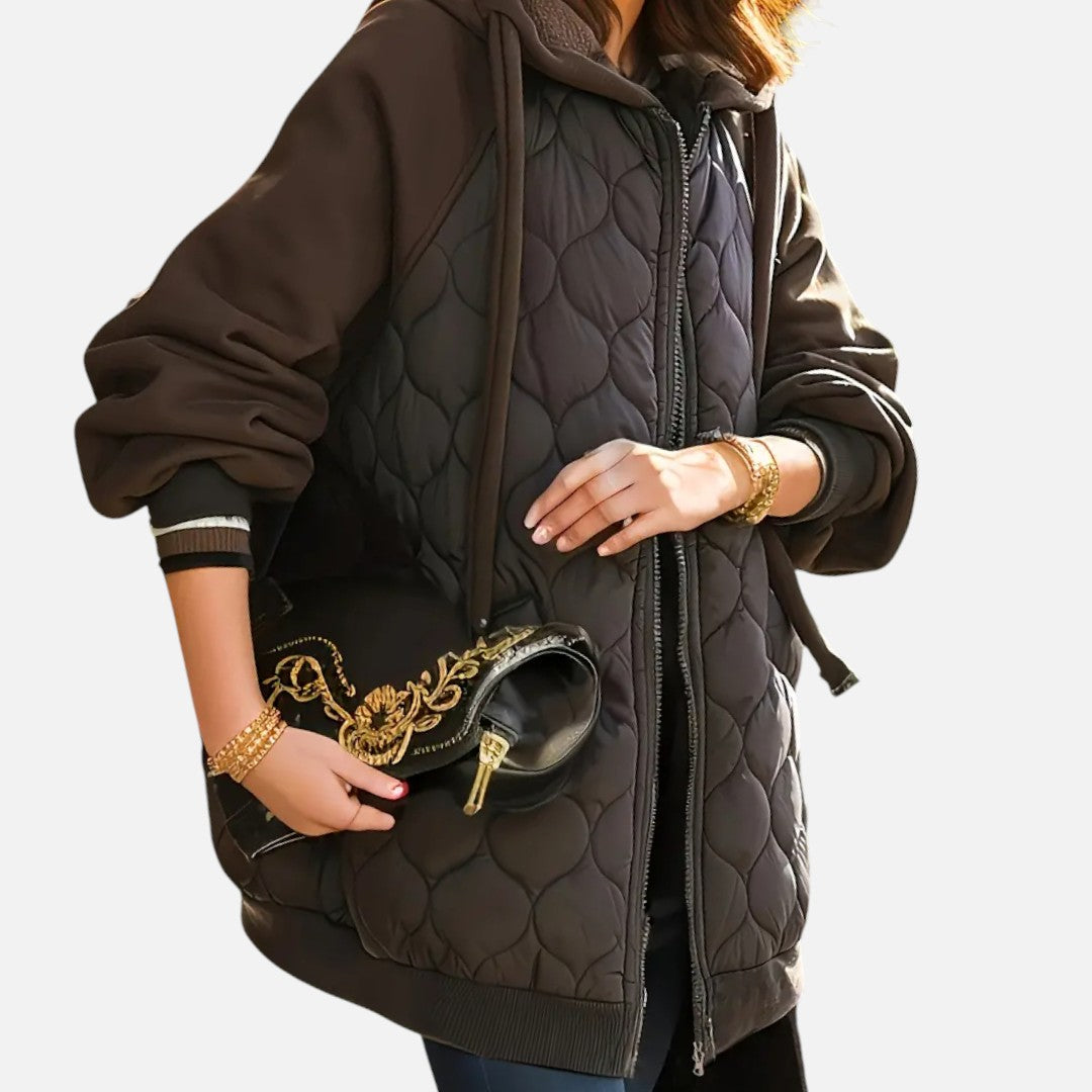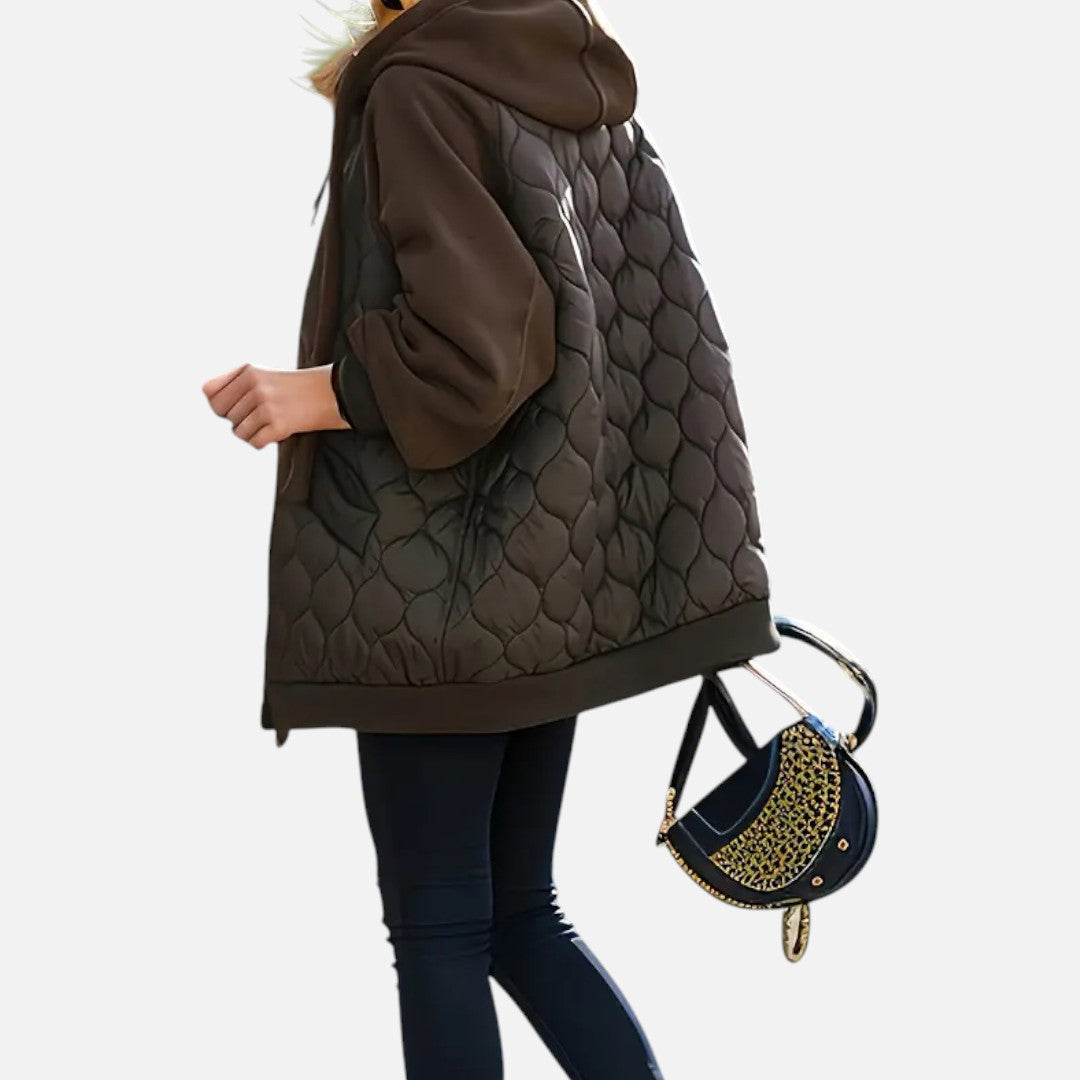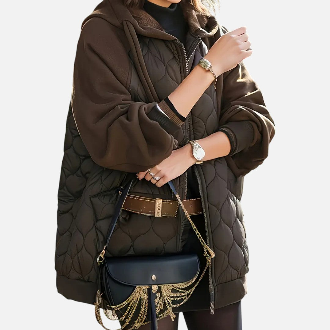 Deze dames gewatteerde winterjas combineert warmte, comfort en elegantie. Met een praktische capuchon, lange mouwen en een handige ritssluiting biedt deze jas optimale bescherming tegen kou. Het quilted design geeft een moderne en veelzijdige uitstraling die perfect past bij dagelijks gebruik.