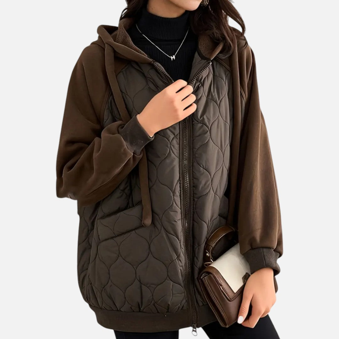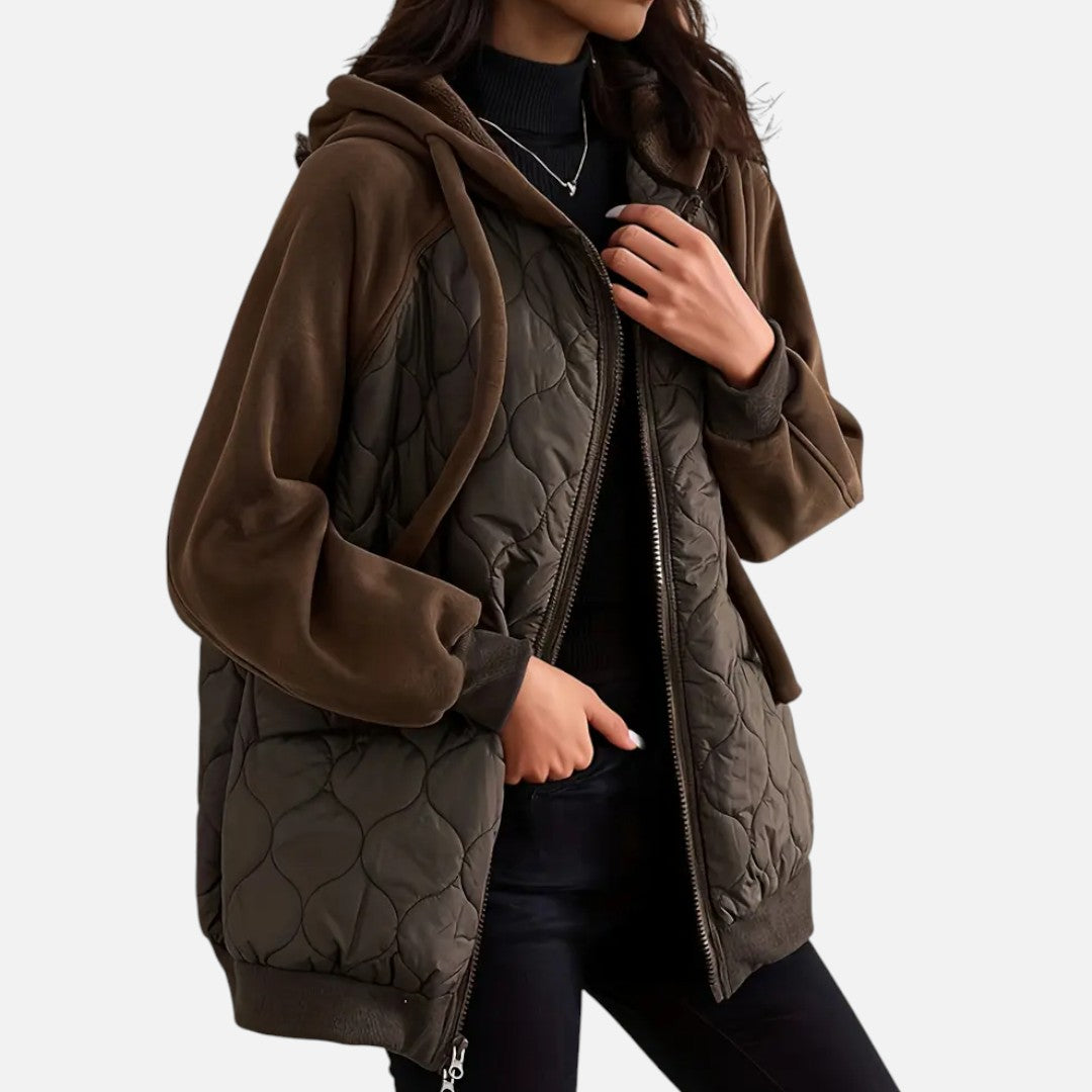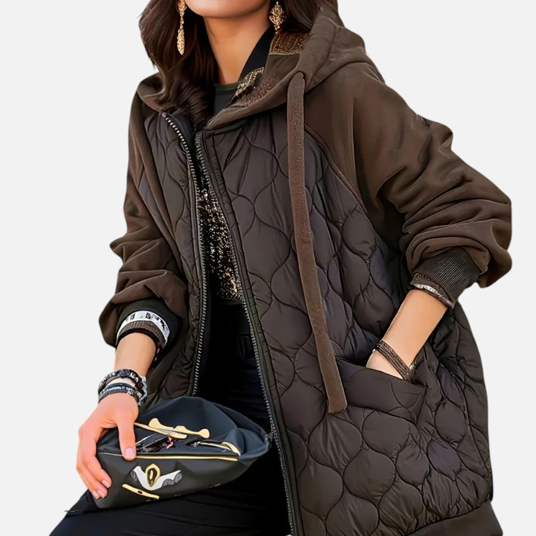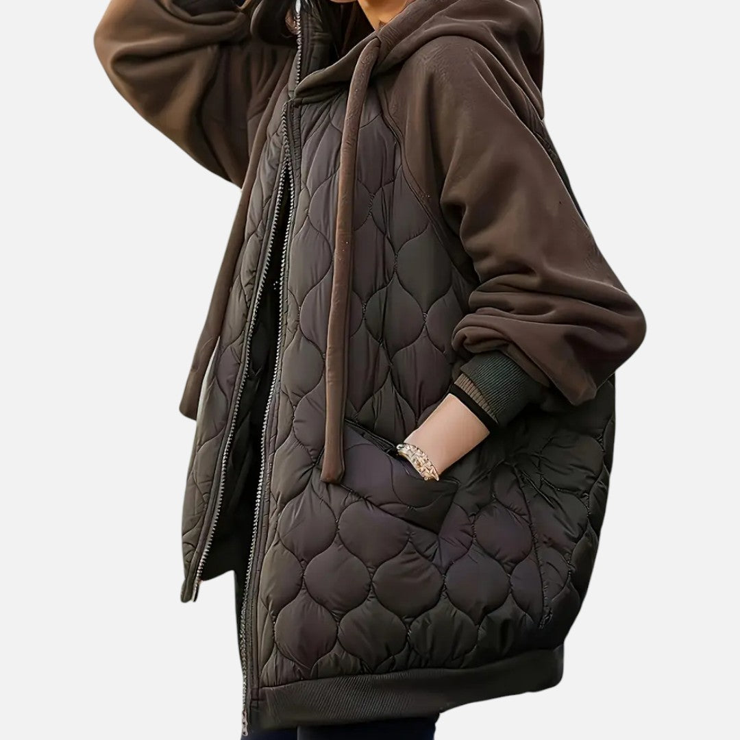 Deze dames gewatteerde winterjas combineert warmte, comfort en elegantie. Met een praktische capuchon, lange mouwen en een handige ritssluiting biedt deze jas optimale bescherming tegen kou. Het quilted design geeft een moderne en veelzijdige uitstraling die perfect past bij dagelijks gebruik.