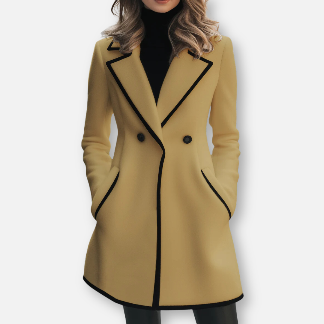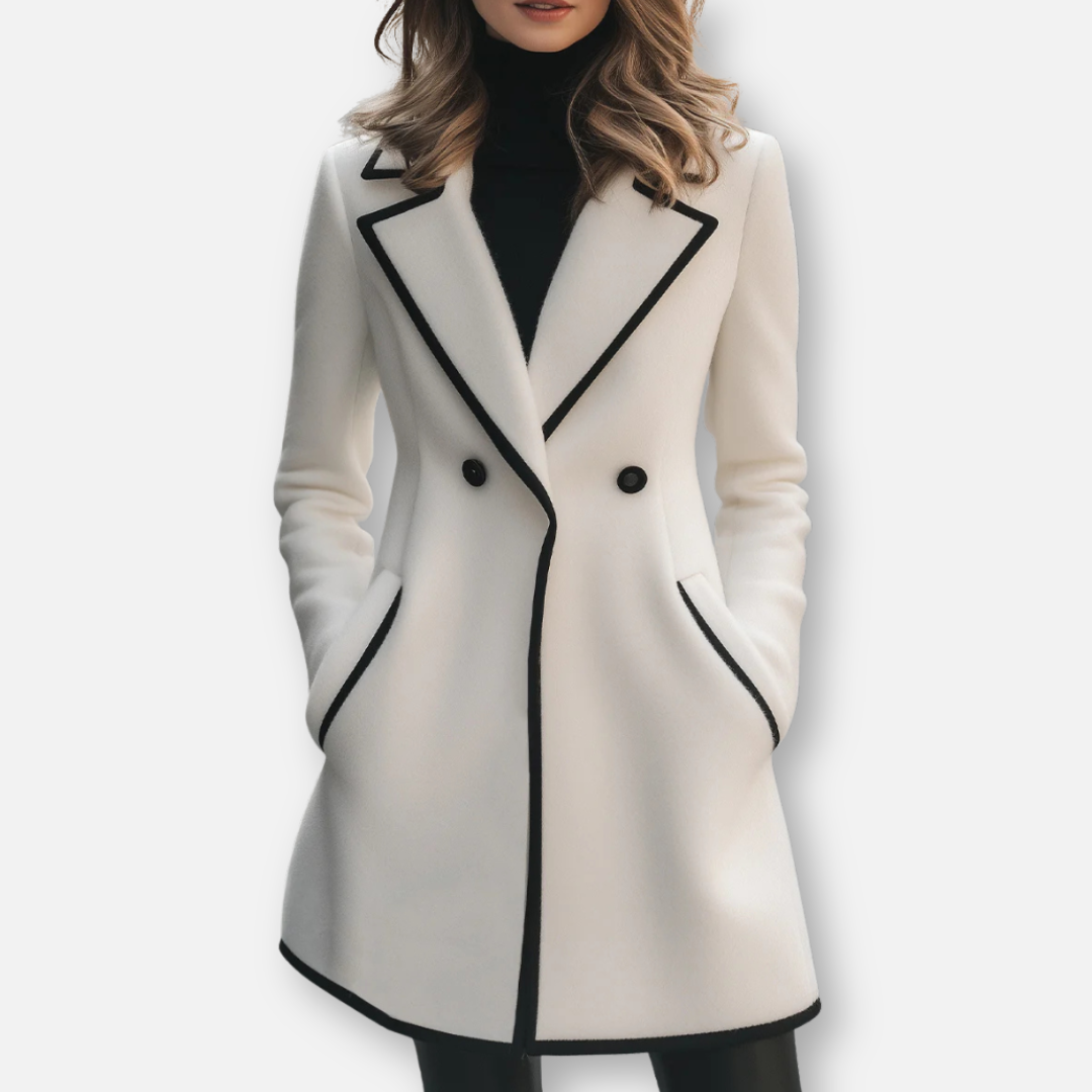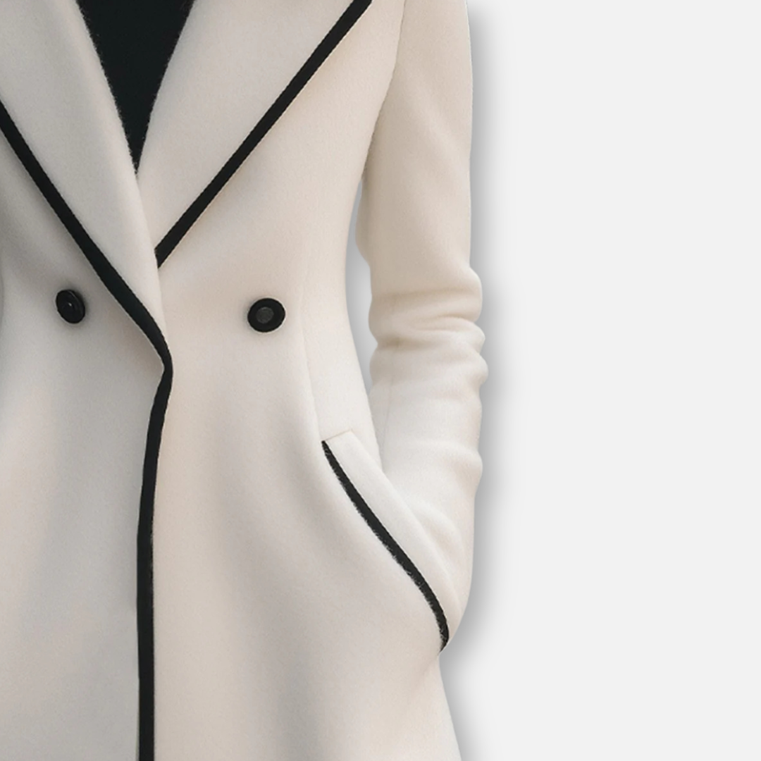 Til je outerwear naar een hoger niveau met deze opvallende oversized jas die modern design en tijdloze elegantie samenbrengt. De scherpe double-breasted snit en de zwarte biezen creëren een krachtig contrast dat de hele winter de aandacht trekt. Met zijn relaxte pasvorm is de jas ideaal voor moeiteloos layeren en flatteert hij ieder figuur. De hoogwaardige mixstof biedt warmte zonder zwaar aan te voelen en is eenvoudig in onderhoud – gewoon koud wassen en laten drogen.