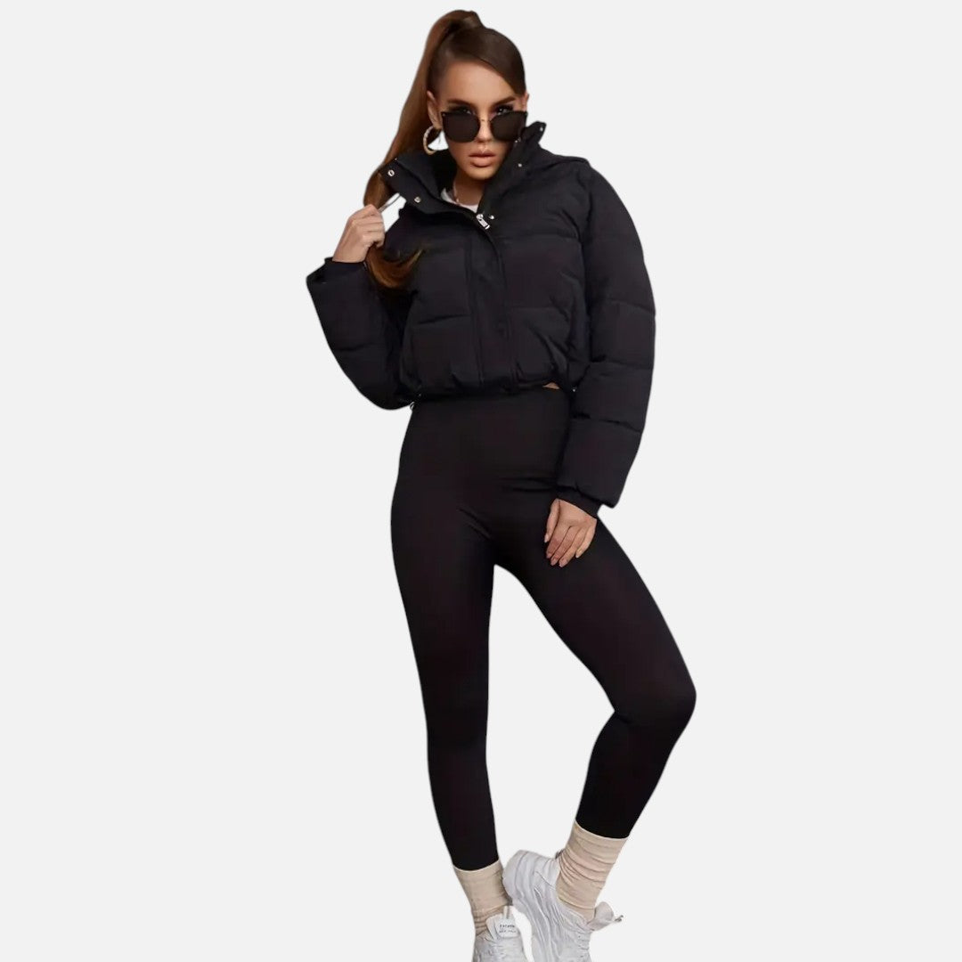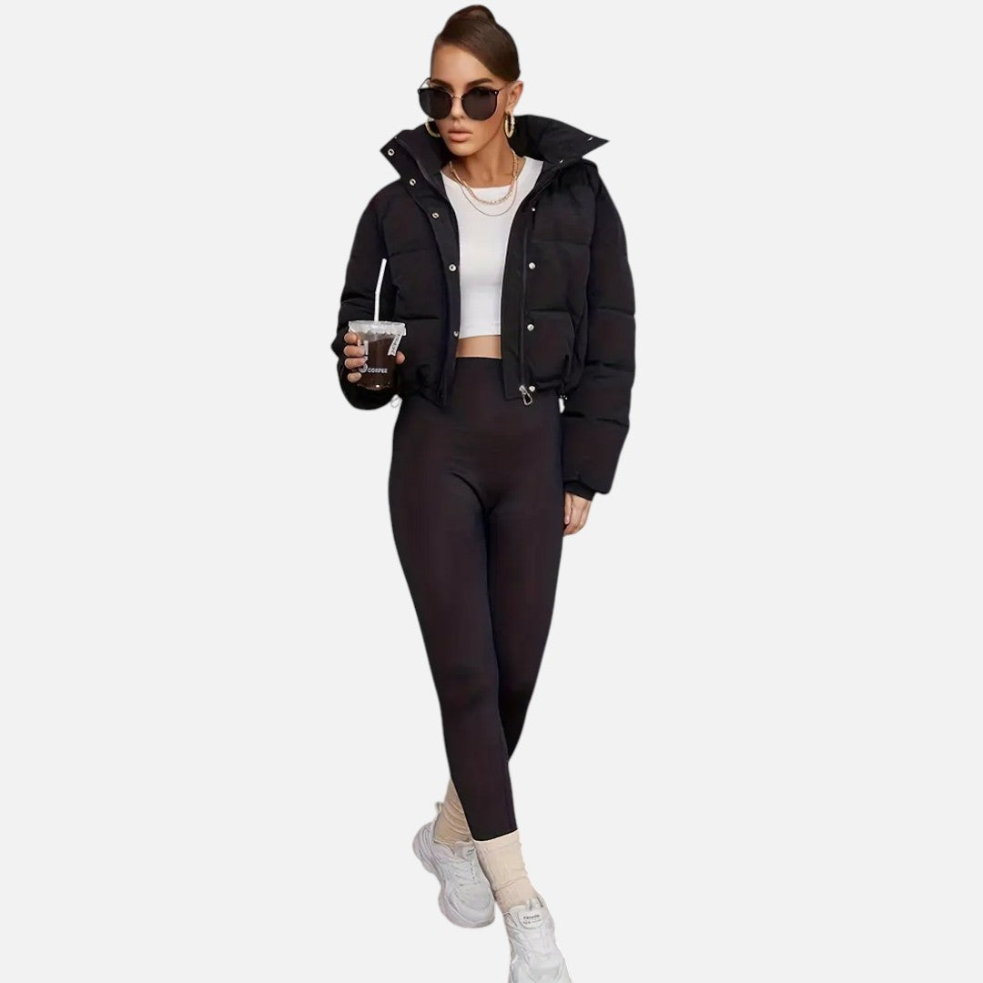 Deze dames puffer winterjas biedt ultieme warmte en stijl in één. Met een verstelbare capuchon, praktische knoopsluiting en kort model is deze jas perfect voor dagelijks gebruik tijdens koude dagen. De comfortabele pasvorm en het moderne design maken dit een onmisbare keuze voor de winter.