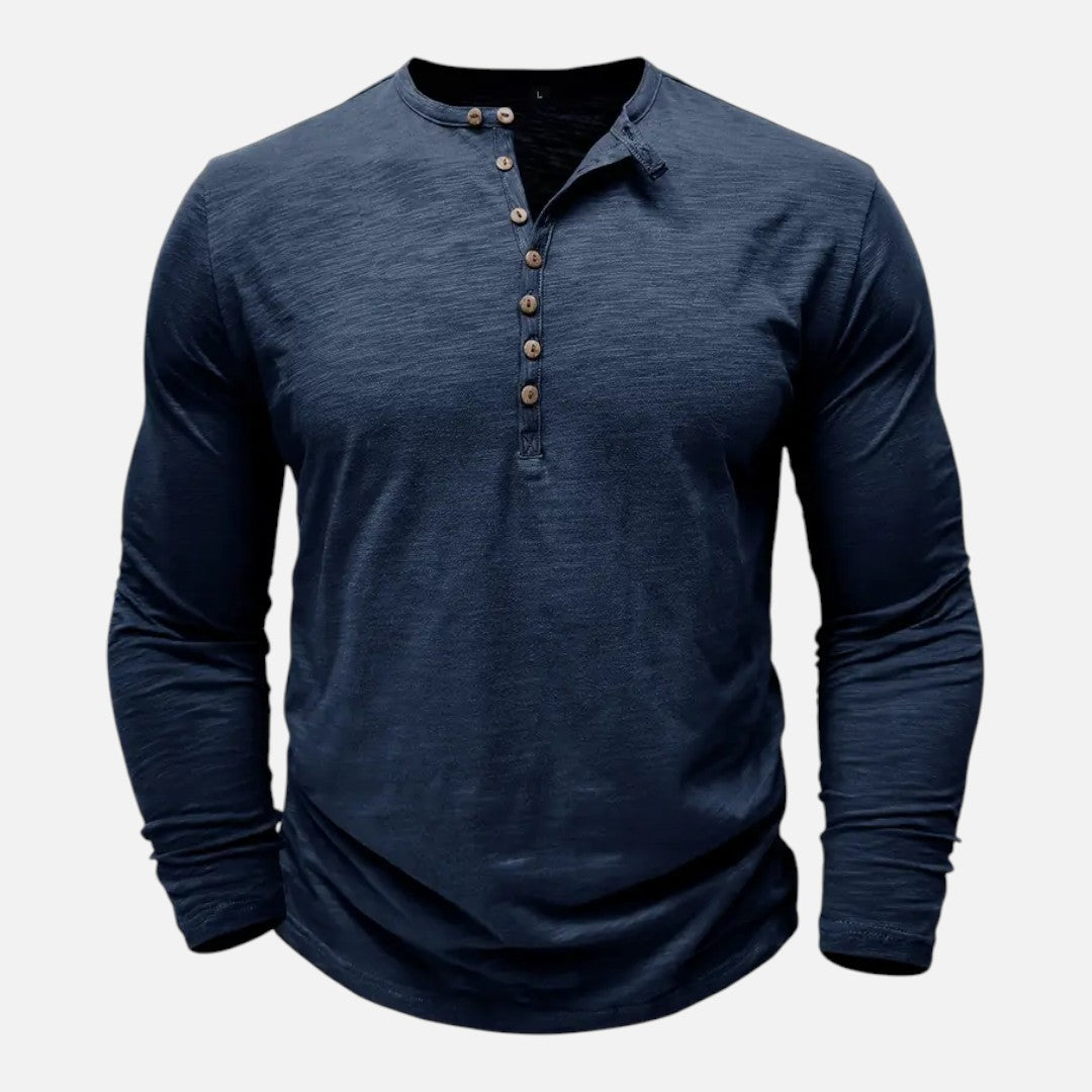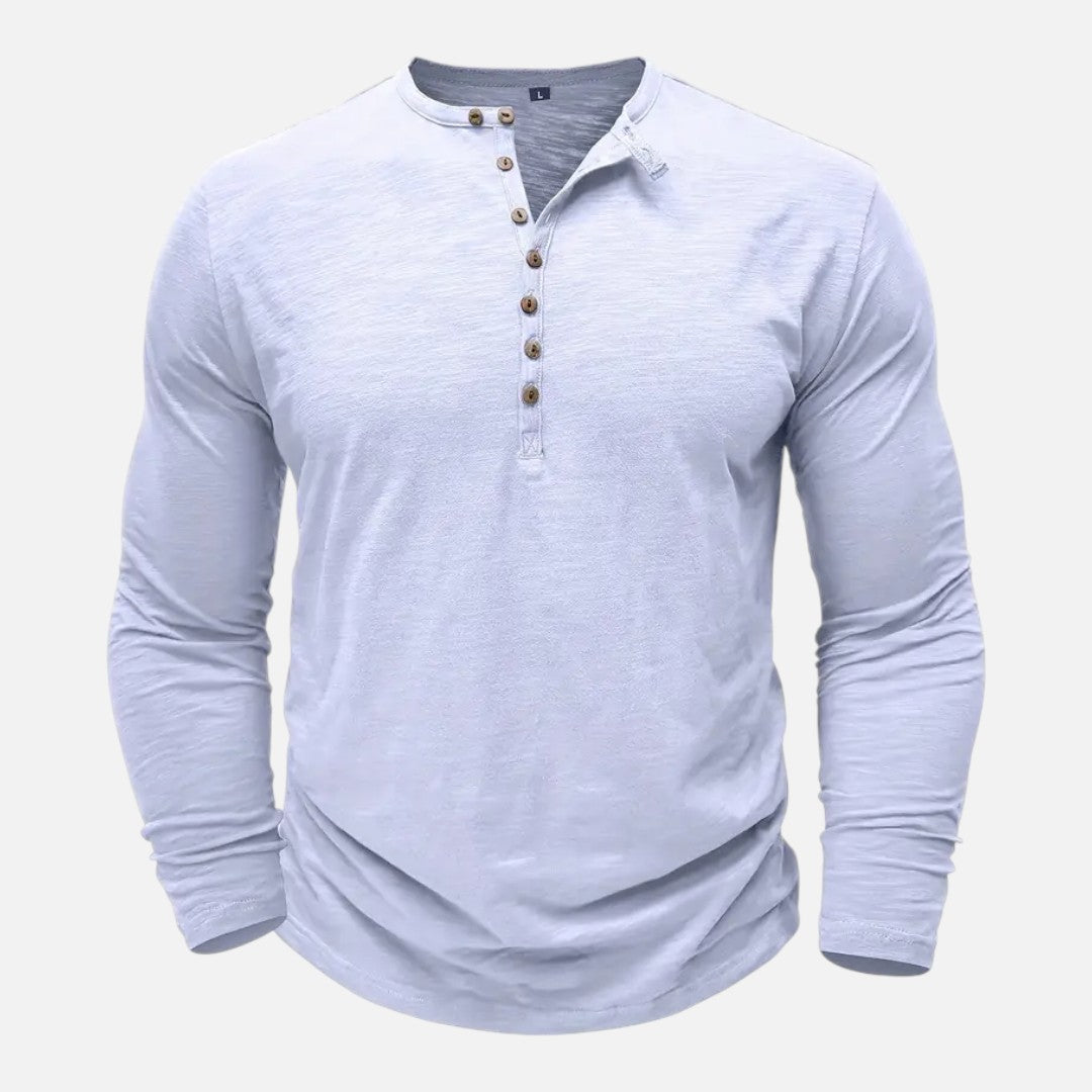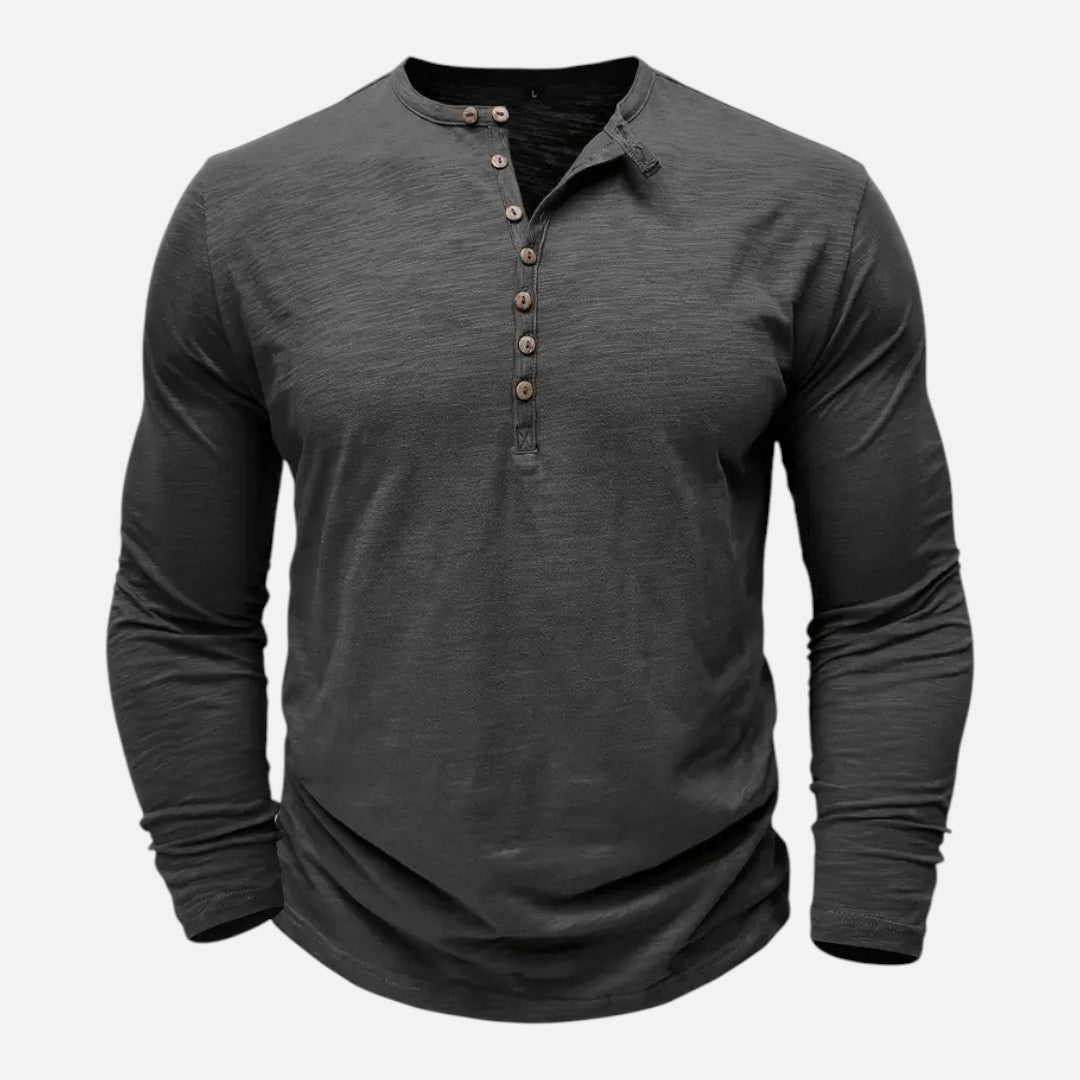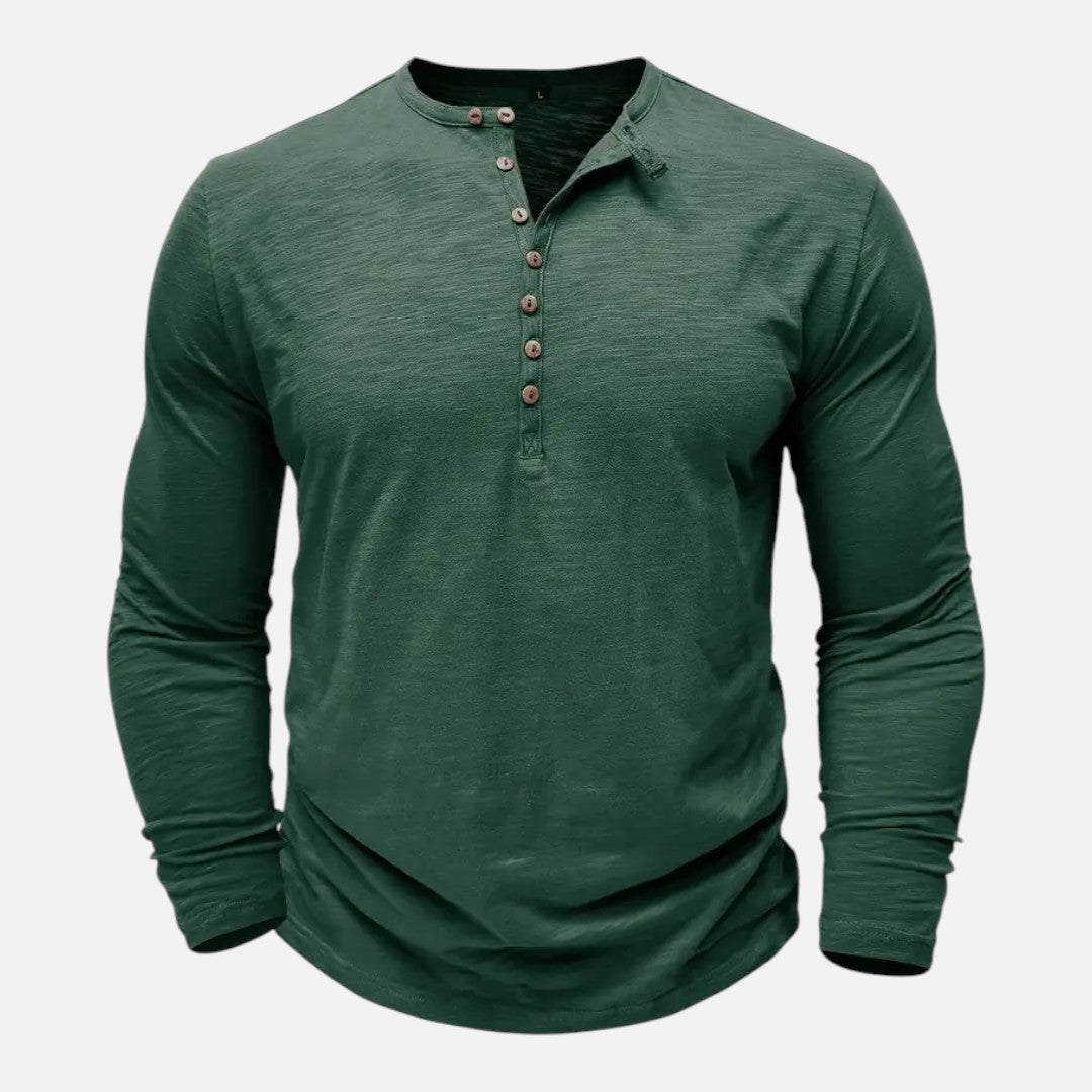 Dit heren shirt met lange mouw van katoen biedt ultiem draagcomfort en een klassieke uitstraling. Met de ronde hals en Henley-knopen combineert dit shirt casual elegantie met veelzijdigheid. Perfect voor dagelijks gebruik – of je nu thuis ontspant of stijlvol de deur uitgaat.
