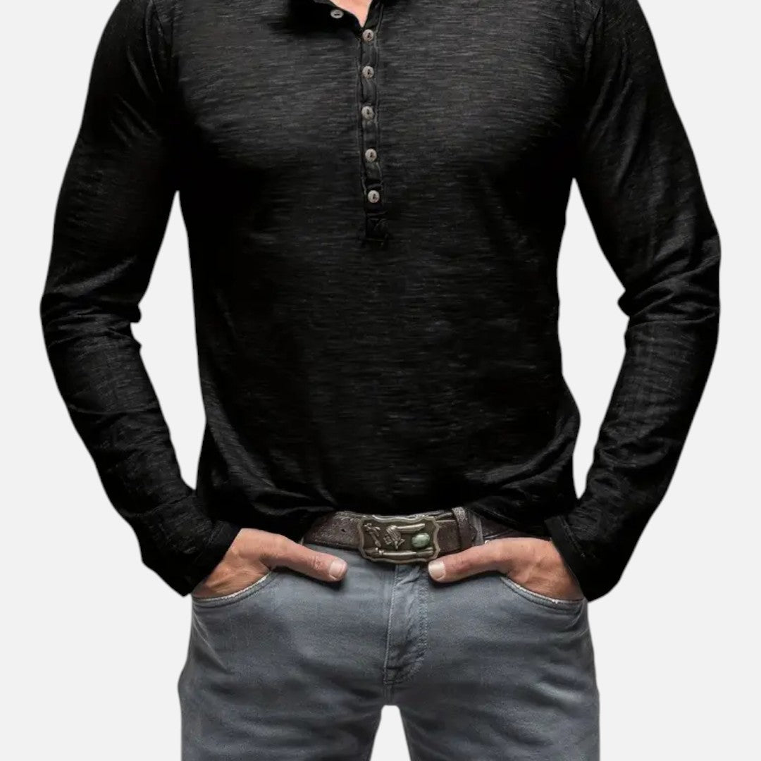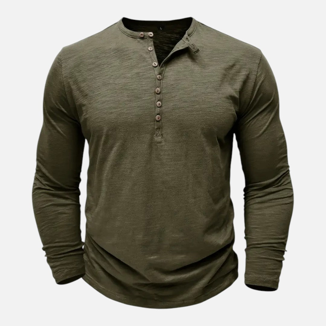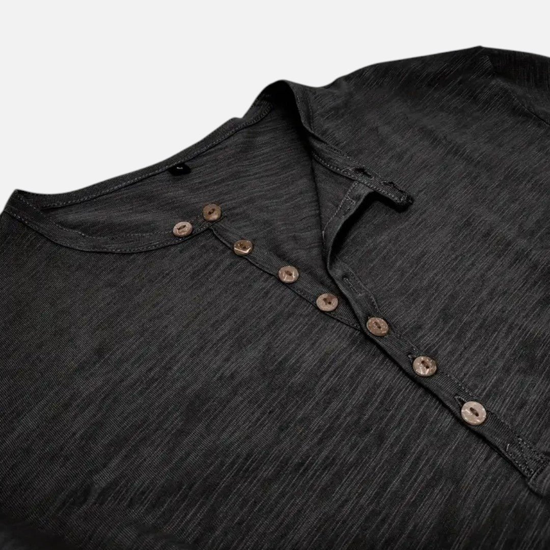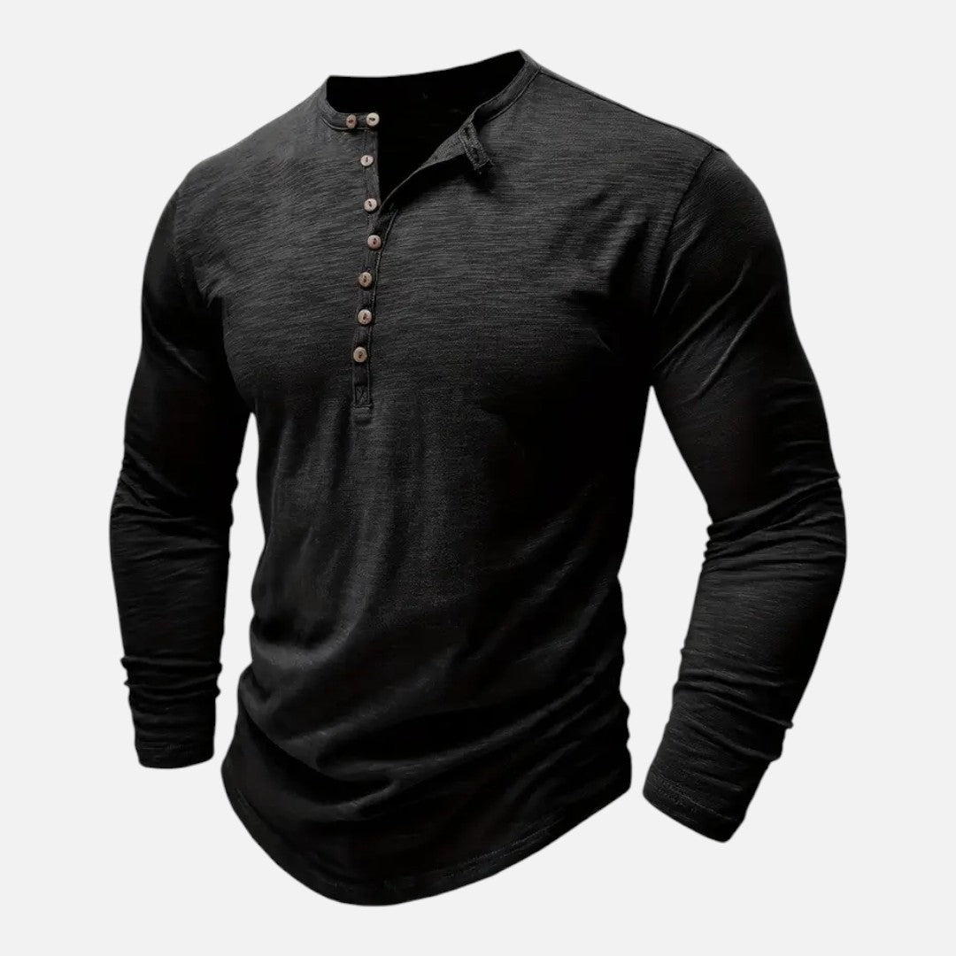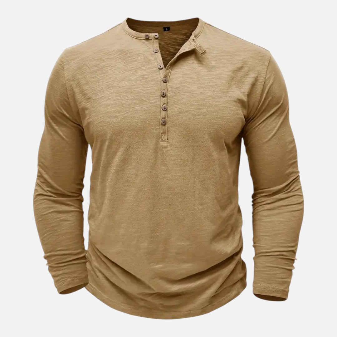 Dit heren shirt met lange mouw van katoen biedt ultiem draagcomfort en een klassieke uitstraling. Met de ronde hals en Henley-knopen combineert dit shirt casual elegantie met veelzijdigheid. Perfect voor dagelijks gebruik – of je nu thuis ontspant of stijlvol de deur uitgaat.