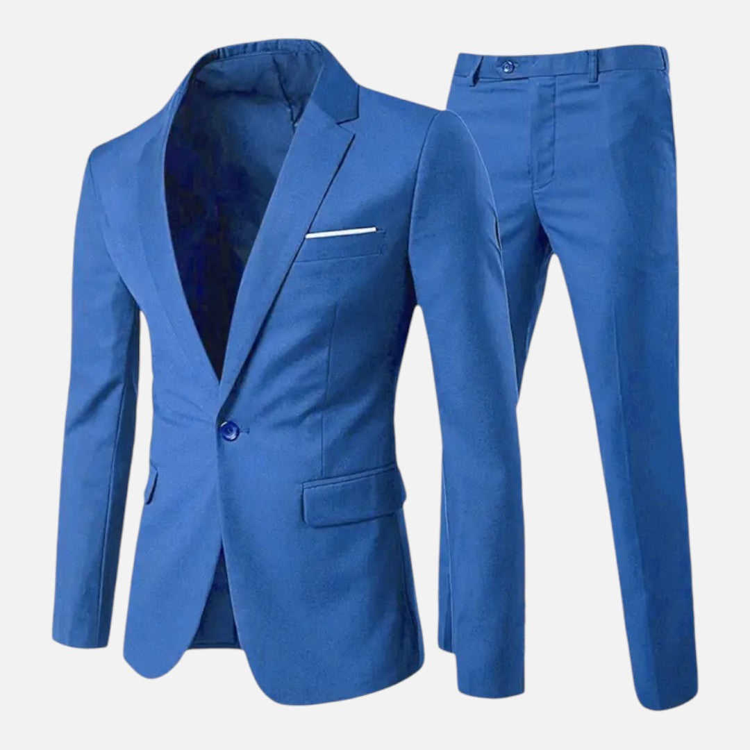 Dit heren pak combineert een moderne uitstraling met praktisch draagcomfort. De nette blazer met bijpassende broek is ideaal voor zakelijke bijeenkomsten, formele evenementen of smart casual gelegenheden. Dankzij het tijdloze design straal je altijd klasse en zelfvertrouwen uit.