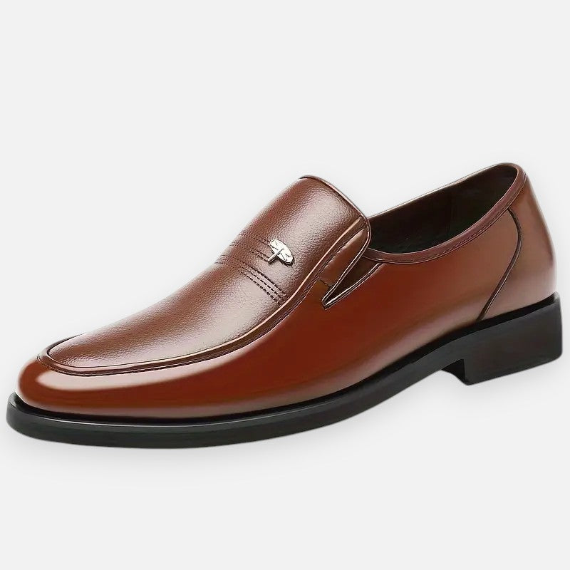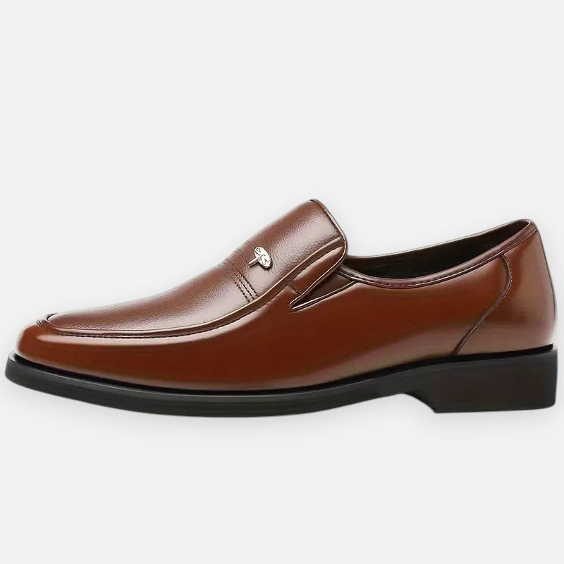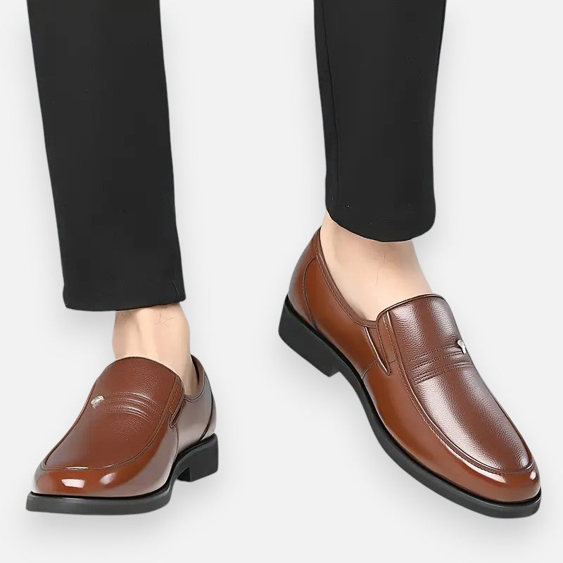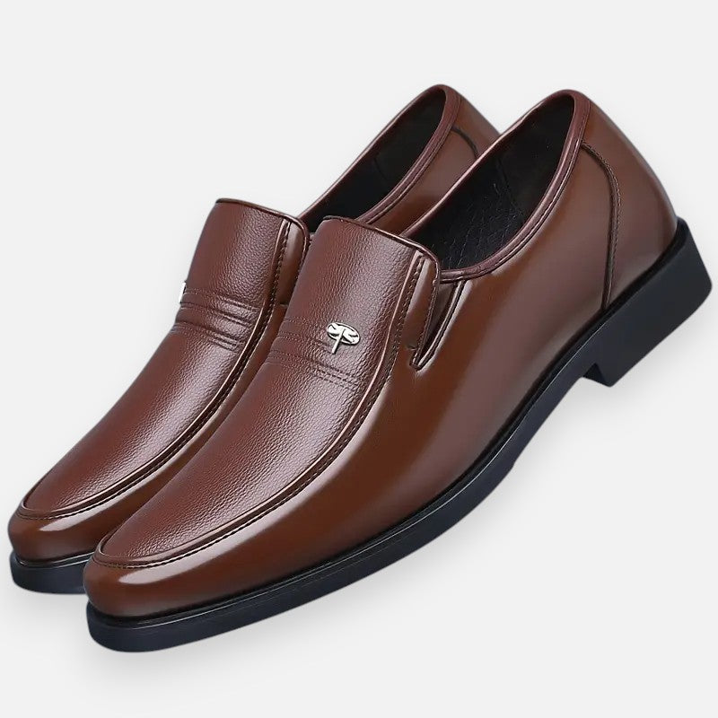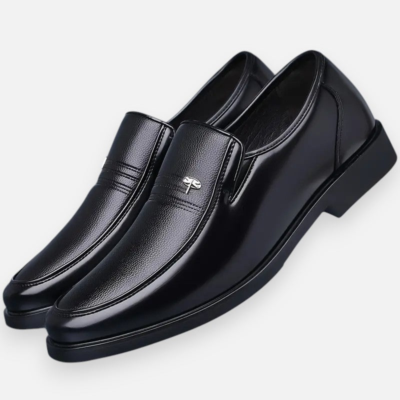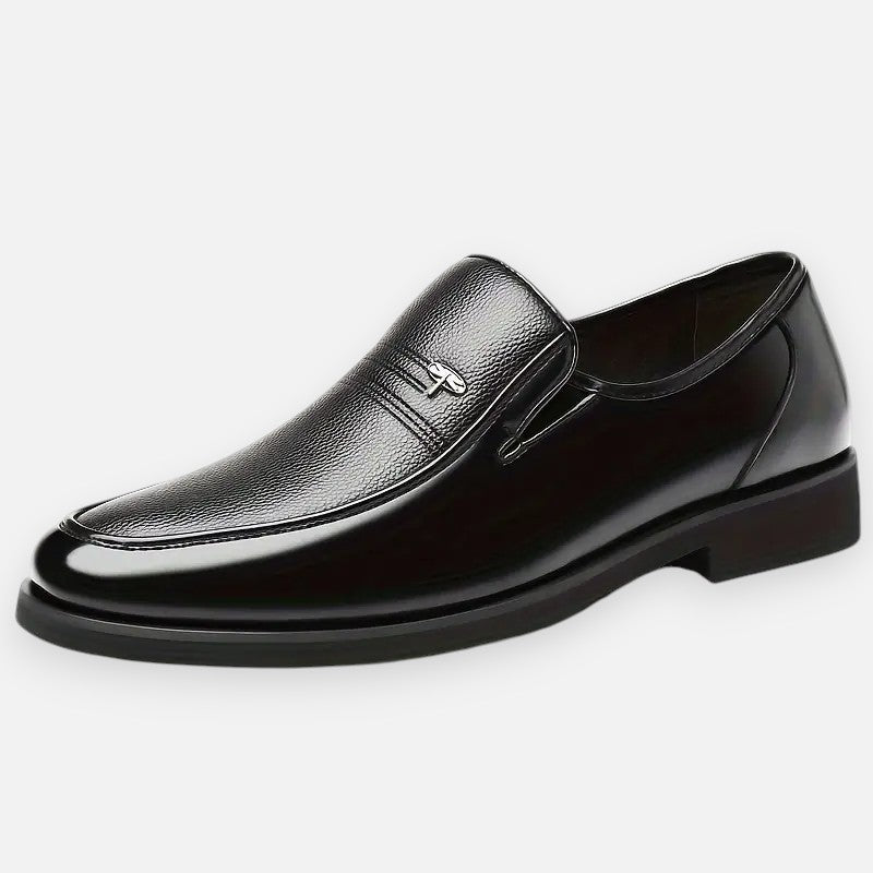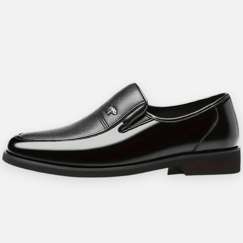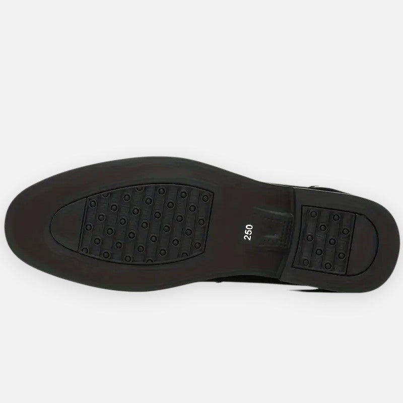 Trek moeiteloos elegantie aan. Deze zwarte heren slip-on schoenen combineren een strakke ronde neus met een duurzame rubberen zool, perfect voor zowel zakelijke als casual gelegenheden. De zachte binnenzool zorgt voor comfort bij elke stap, terwijl het tijdloze ontwerp eenvoudig te combineren is met zowel een pak als een smart-casual outfit.