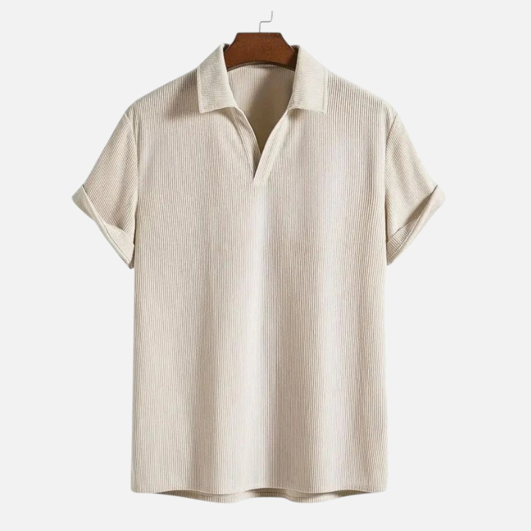 Stel je voor: een zomerse middag waarop je moeiteloos stijlvol voor de dag komt. Deze heren polo met subtiele ribstructuur voelt zacht aan, ademt luxe en geeft je outfit een verzorgde uitstraling – of je nu een zakelijke lunch hebt of ontspannen geniet op een terras.
