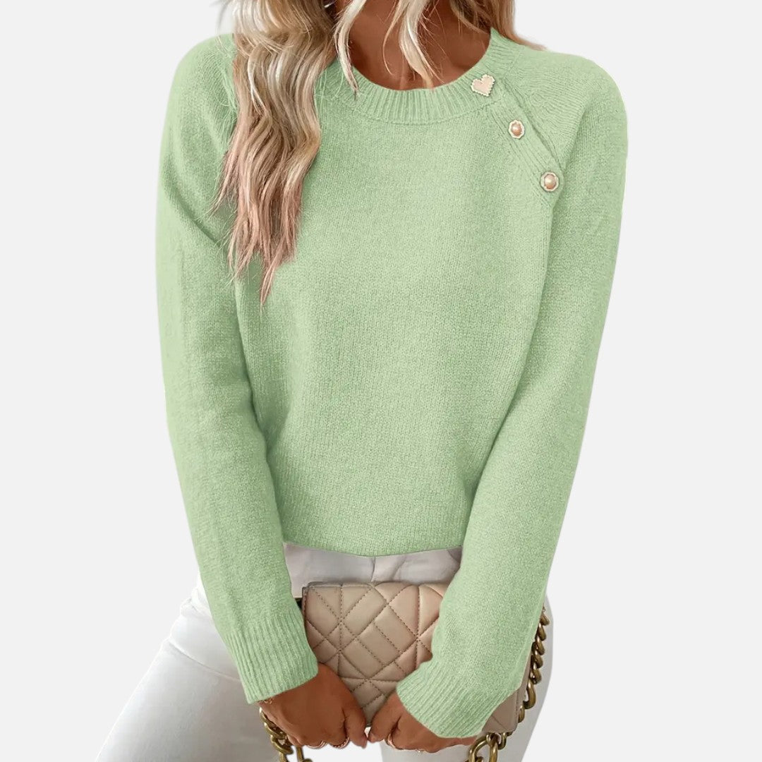 Deze dames trui met asymmetrische schouder en knoopdetail geeft je outfit een elegante en moderne touch. Het zachte breisel voelt comfortabel aan en de lange mouwen houden je warm tijdens koude dagen. Perfect voor dagelijks gebruik, werk of een casual-chique gelegenheid.