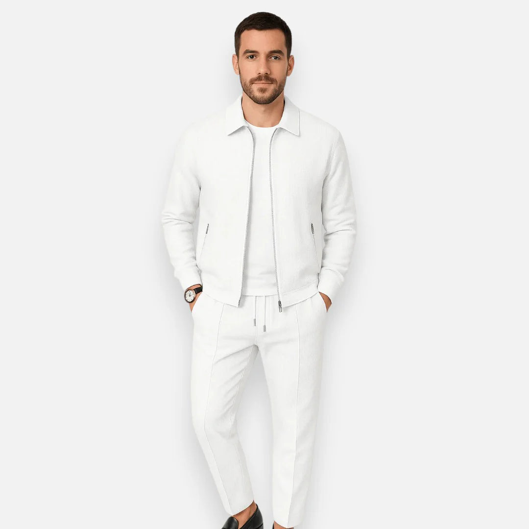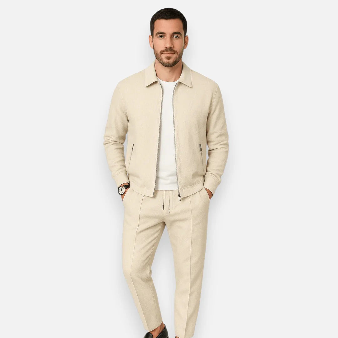 Dankzij de subtiele textuur en comfortabele pasvorm voelt de set niet alleen aangenaam, maar laat hij je er ook verzorgd uitzien. Een tijdloos stuk dat naadloos aansluit bij de old money stijl die je zoekt.