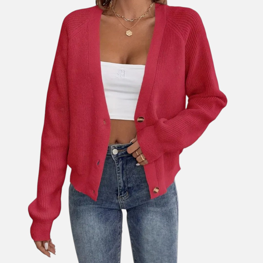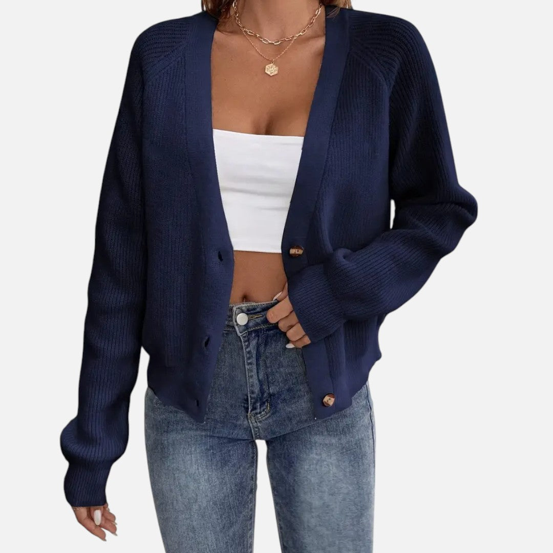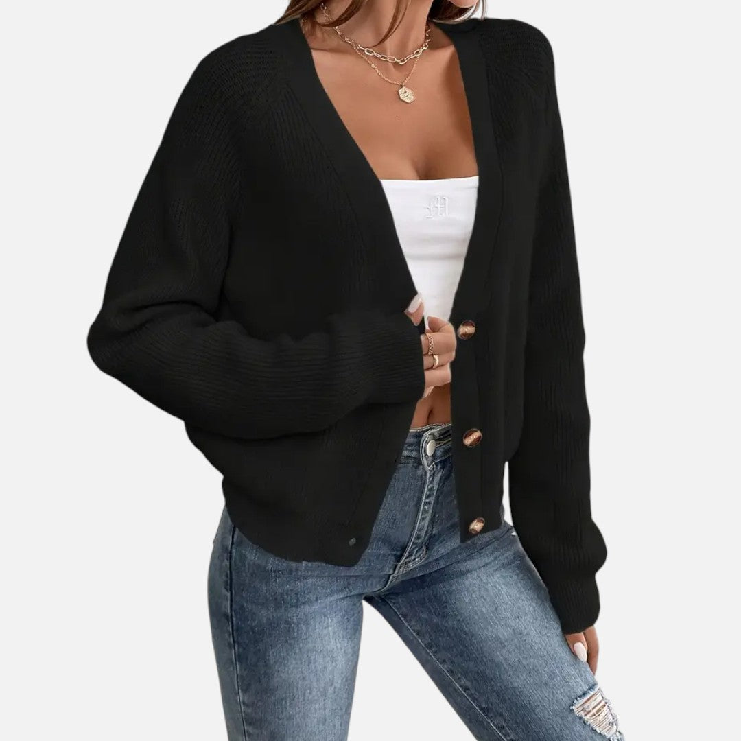 Dit elegante damesvest met V-hals combineert stijl en comfort in één. De lichtgewicht gebreide stof en lange mouwen zorgen voor warmte en bewegingsvrijheid, terwijl de klassieke knoopsluiting een verfijnde uitstraling geeft. Perfect om moeiteloos te combineren met casual of zakelijke outfits.